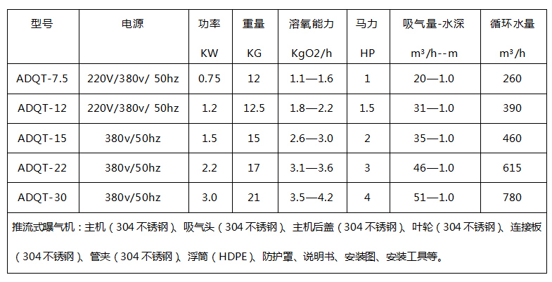 ADQT型潛水式推流曝氣機是專門針對江河湖泊等水體凈化改善水質(zhì)而研制開發(fā)設(shè)計的增氧、造流、循環(huán)、凈化水質(zhì)的高效節(jié)能的水處理設(shè)備。