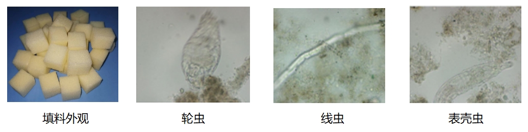 微生物濾床的生物相(填料及附著微生物菌種類):