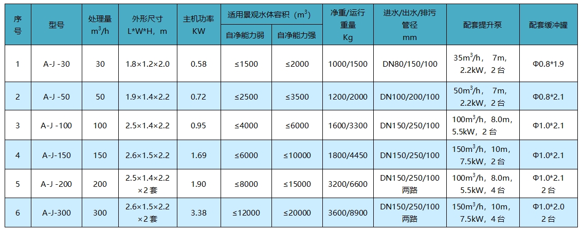 A-J景觀水體凈化機規(guī)格參數(shù)