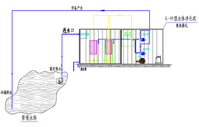 A-M河湖水體凈化機(jī)的應(yīng)用方式● 方式一:內(nèi)部循環(huán)凈化