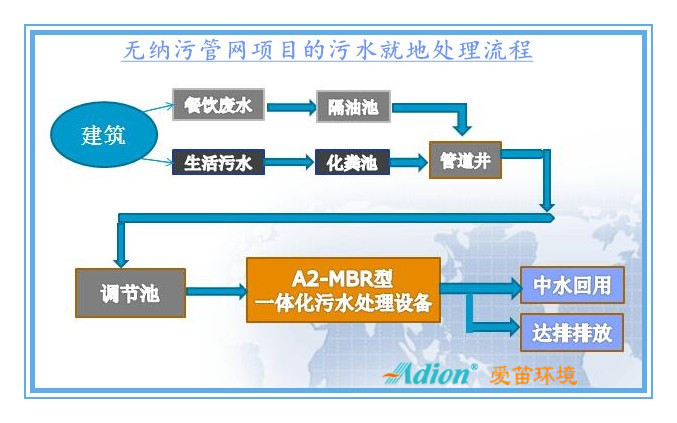 工藝流程本公司的A2-MBR型一體化污水處理,出水水質(zhì)好、占地小、安裝便捷、運(yùn)行維護(hù)簡便等特點,與此類項目的需求非常吻合,已得以廣泛應(yīng)用。