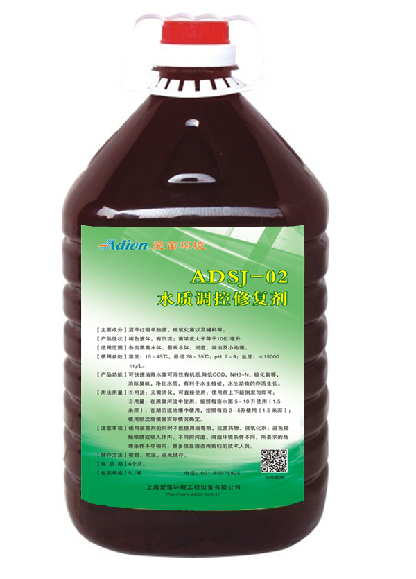 在后期的運(yùn)營(yíng)維護(hù)期內(nèi),如果水質(zhì)受外來(lái)污染沖擊變差時(shí),可投加本公司的ADSJ-02型水質(zhì)調(diào)控修復(fù)劑,對(duì)水體進(jìn)行凈化修復(fù)。