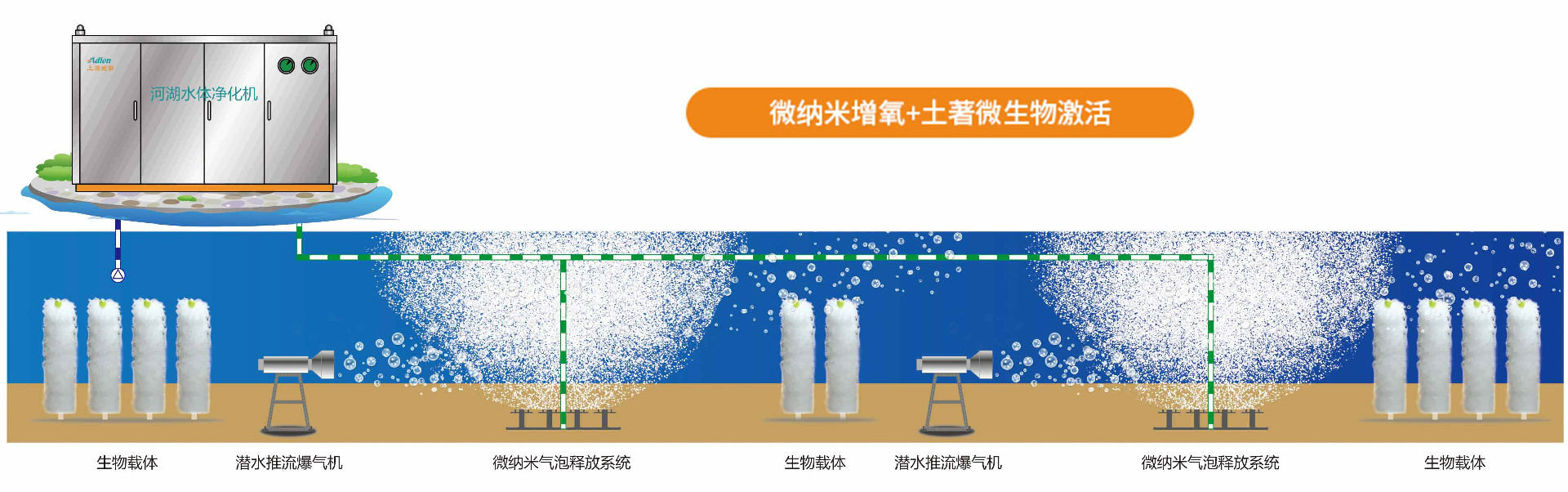 因此,要從根本上治理黑臭問(wèn)題,除了做好外源截污及適當(dāng)清淤的前提下,須解決水體中溶氧的不足,并修復(fù)水體中的微生態(tài)系統(tǒng),提高水體的自凈能力。